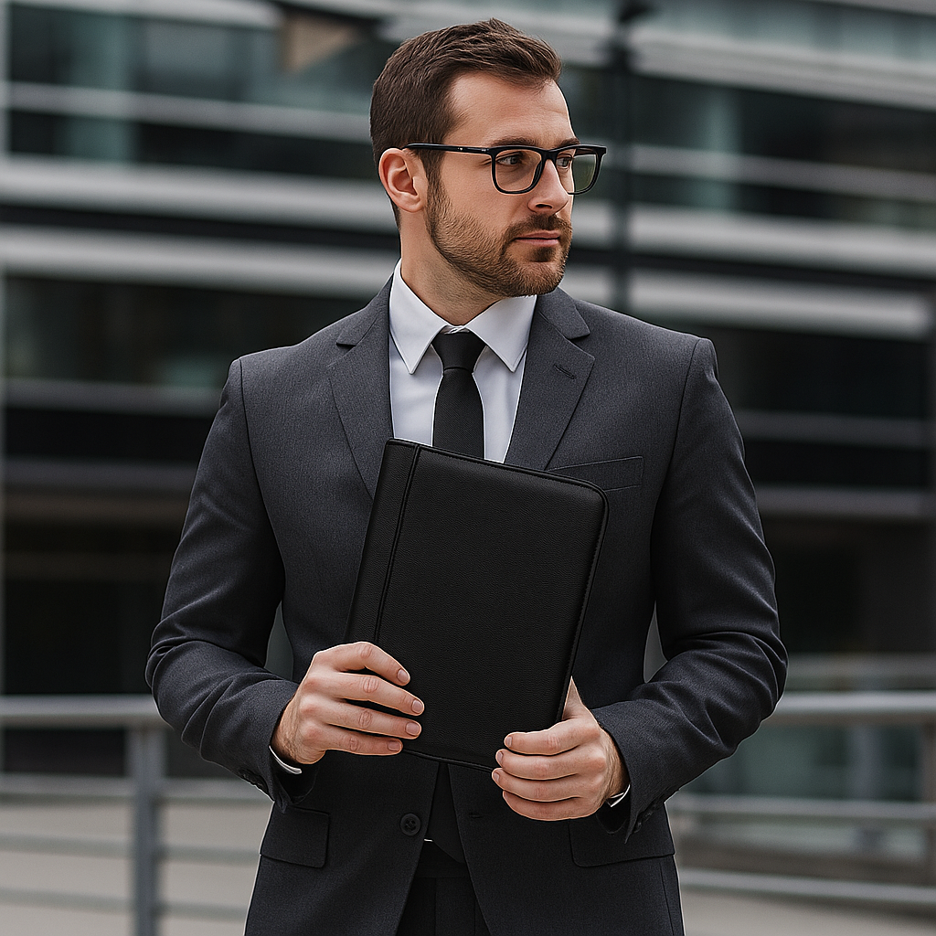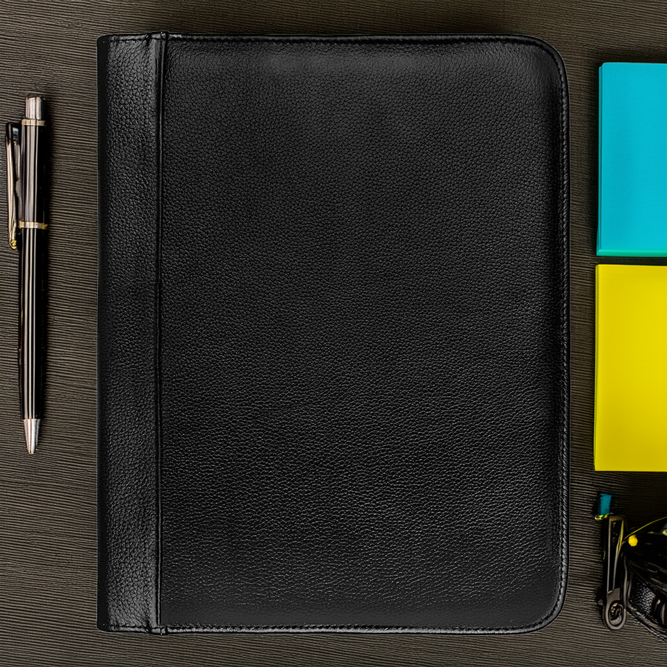 Carpeta con logotipo empresarial de piel genuina negra tamaño carta. Resguarda tu Laptop Slim de 13″, Ipad y documentos importantes. Cuenta con un sistema de cierre zipper. Recuerda que la piel es un producto natural, por lo que marcas y rasguños son completamente normales sin afectar de ningún modo el desempeño de tu Omine.